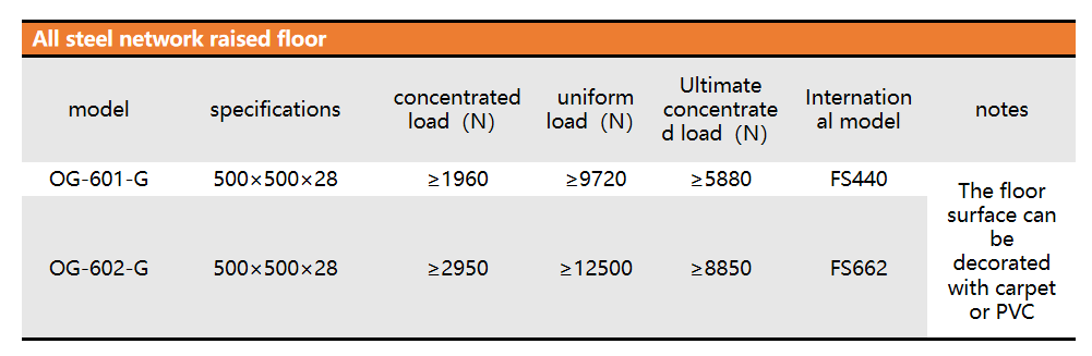 Suitable for 5A level intelligent office buildings, conference rooms, electronic classrooms, offices, rest halls, exhibition halls, banks and other dustproof and waterproof occasions, with carpets or other decorative surfaces laid on the surface.