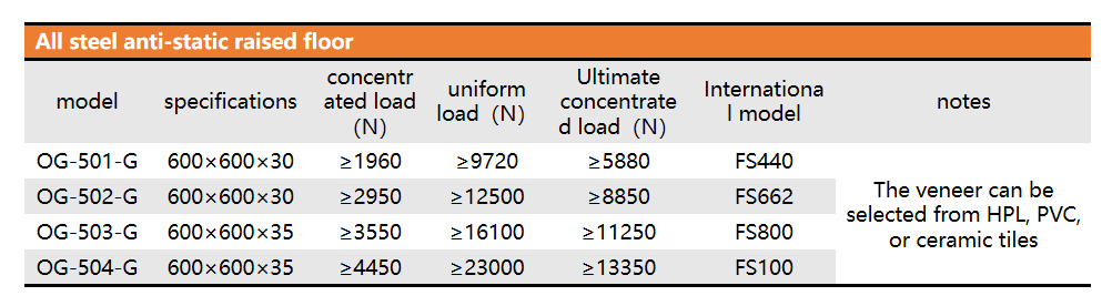 The bottom plate is made of high-quality steel plate for spherical stretching, and the panel is made of hard SPCC steel plate. The upper and lower steel plates are stamped and spot welded to form. The surface is treated with epoxy spray rust prevention after phosphating, and the middle shell is filled with high-strength foam cement. After curing, a stable load-bearing structure is formed. The surface is adhered with high wear-resistant and anti-static PVC veneer, and assembled with network brackets, square tube beams, and screws.